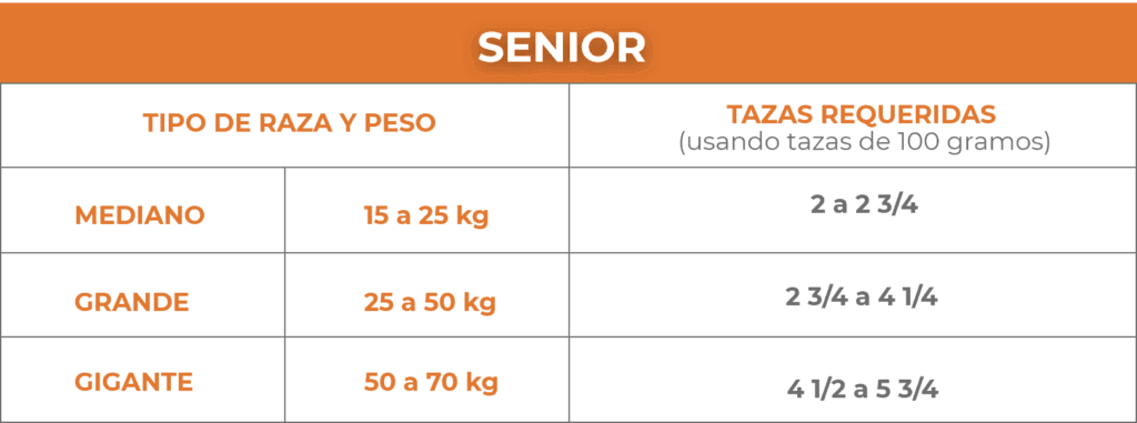 *Por casa 5 kilogramos de peso adicional se ofrece 1/3 de taza de alimento.