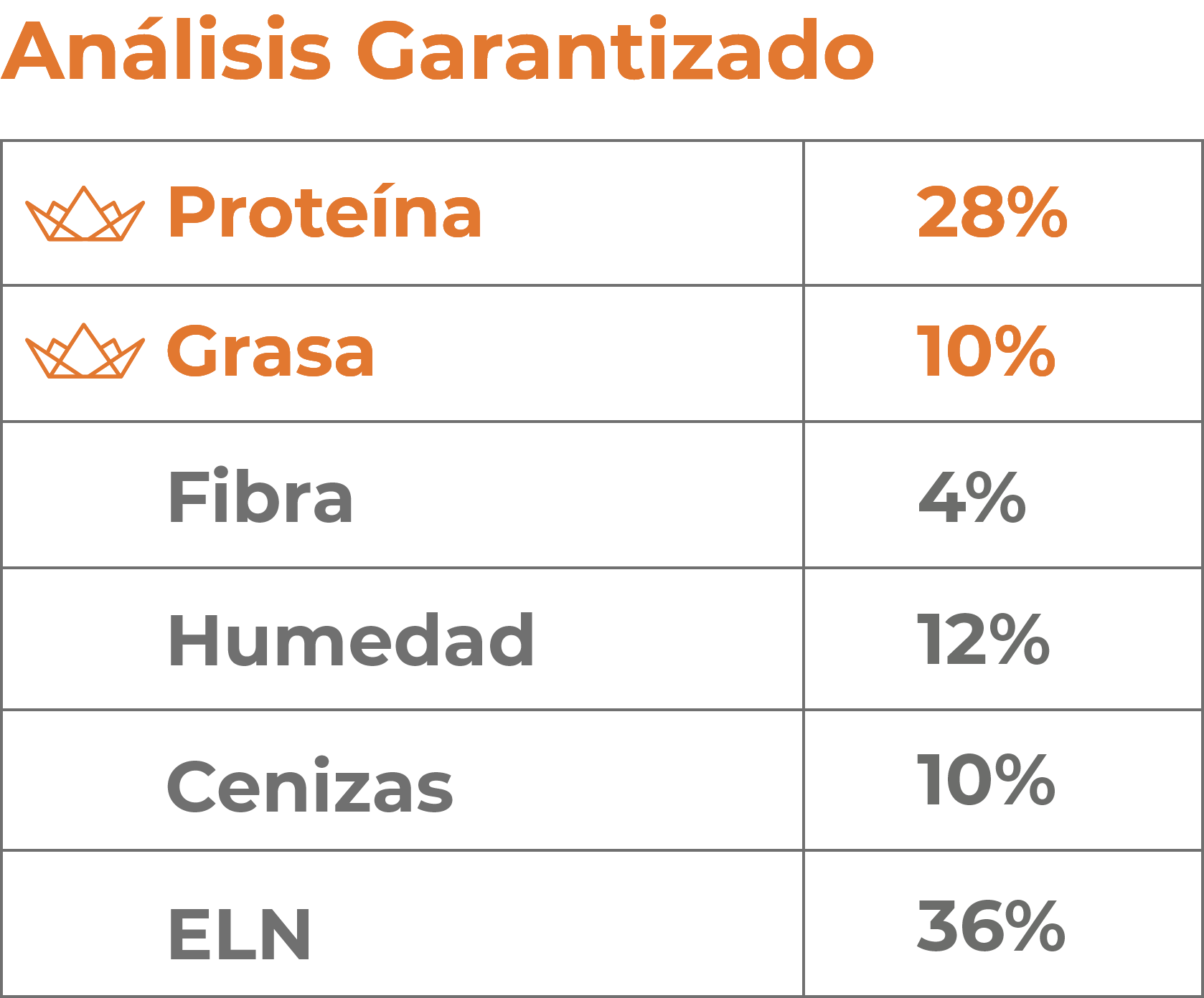ENERGÍA METABOLIZABLE: 3,036 Kcal/Kg | 303.6 Kcal/taza